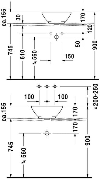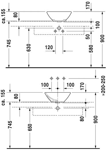 Umywalka stawiana na blat, bez półki na baterię, z otworem przelewowym, w komplecie zaślepka przelewu chrom oraz mocowanie.