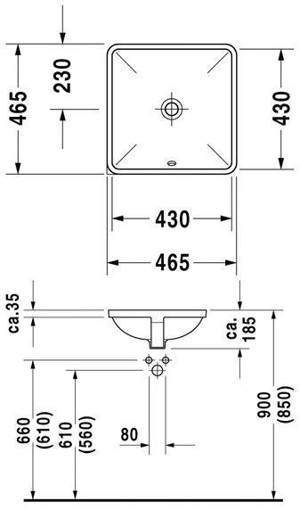 Umywalka bez półki, bez otworu na baterię, z otworem przelewowym.