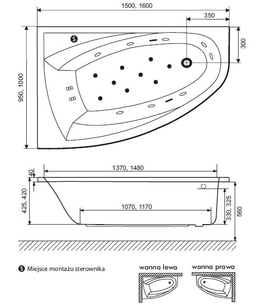 Excellent Aquaria Comfort wanna asymetryczna 160x100 lewa z nogami WAEX.AQL16WH