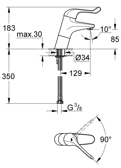 jednouchwytowa bateria umywalkowa z bezpiecznym mieszaczem, DN 15