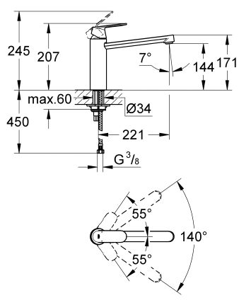 jednouchwytowa bateria zlewozmywakowa, DN 15