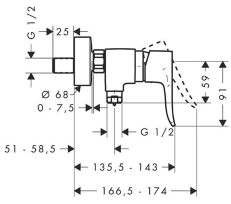 Jednouchwytowa bateria prysznicowa DN15, montaż natynkowy