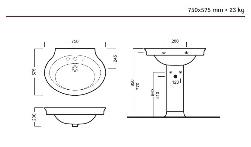 Montaż : wisząca / możliwość kompletowania z postumentem.
