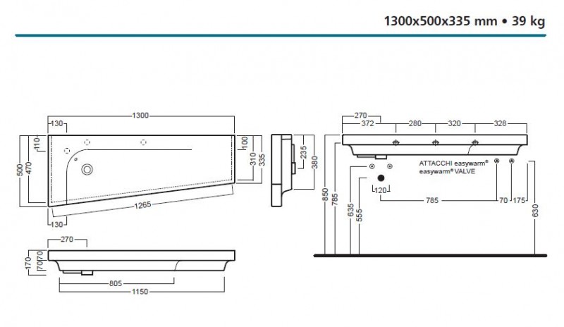 Opinie o: Hatria Grandangolo G-130T umywalka trapezowa ceramiczna prawa 130cm z 1 otworem YXF5