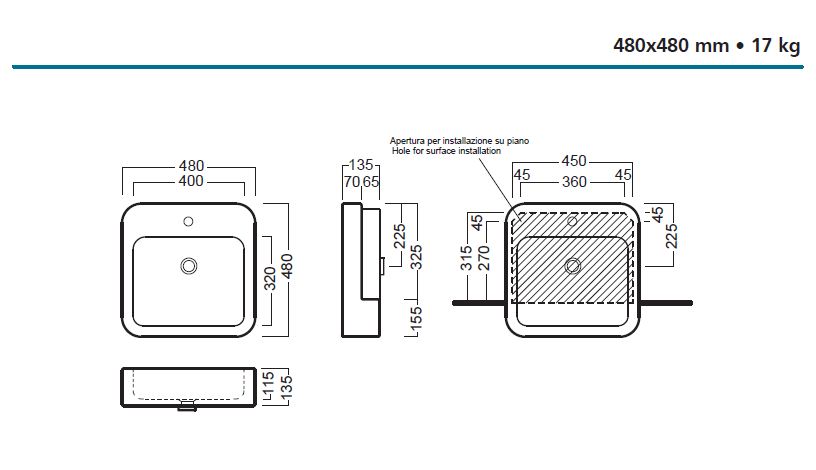 Hatria Happy Hour 09:30 umywalka półblatowa 48x48 Y0M8