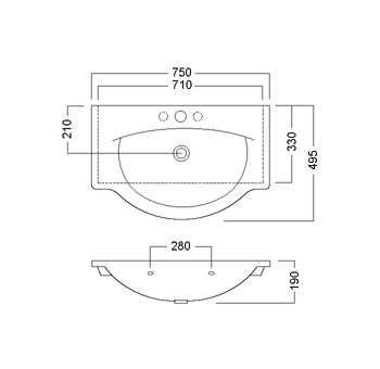 Reling i półkę pod umywalkę należy zamawiać osobno.