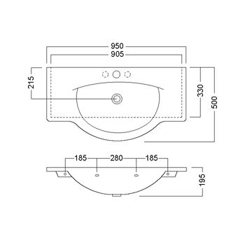 Reling i półkę pod umywalkę należy zamawiać osobno.