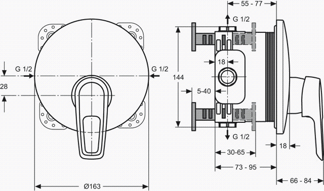 • Głowica 47 mm CLICK z funkcją ECO i ograniczeniem temperatury wody