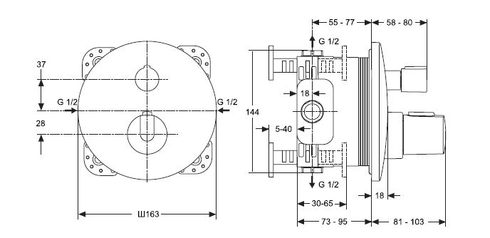 CERATHERM 100 NEW - bateria termostatyczna natryskowa podtynkowa