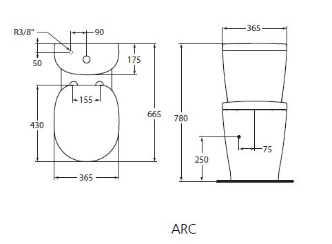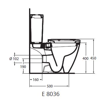 z dopływem wody od dołu lub z boku i wolnoopadającą lub zwykła deską sedesową z duroplastu