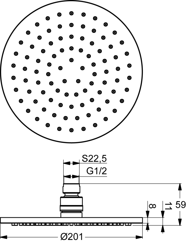 • Deszczownica o średnicy 200 mm