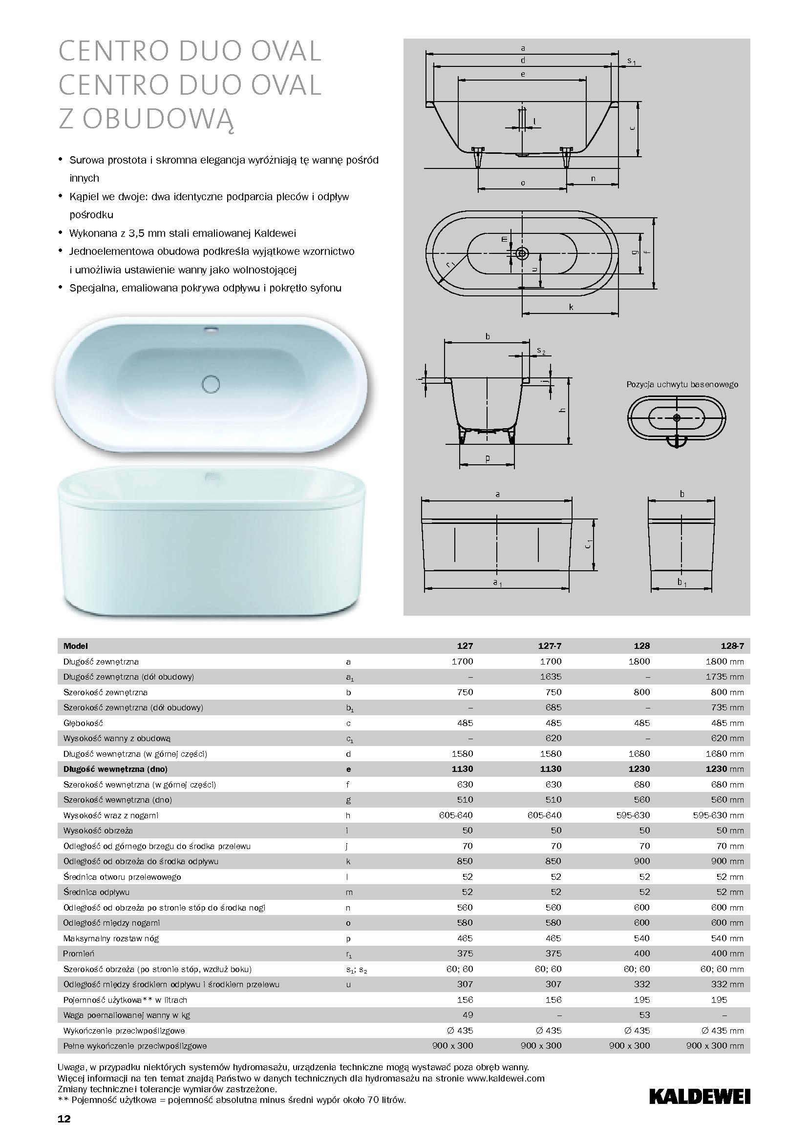 Wykonana z 3,5 mm stali emaliowanej Kaldewei