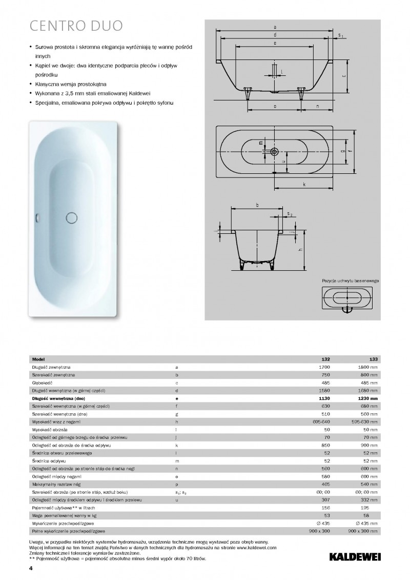 Wykonana z 3,5 mm stali emaliowanej Kaldewei