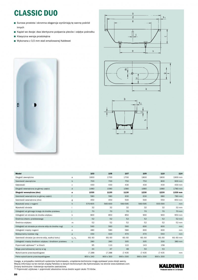 Wykonana z 3,5 mm stali emaliowanej Kaldewei