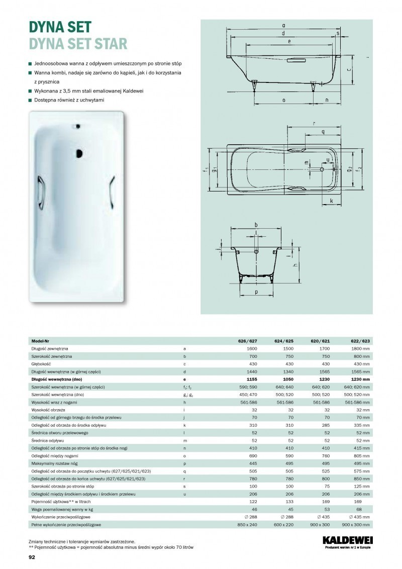 Wykonana z 3,5 mm stali emaliowanej Kaldewei