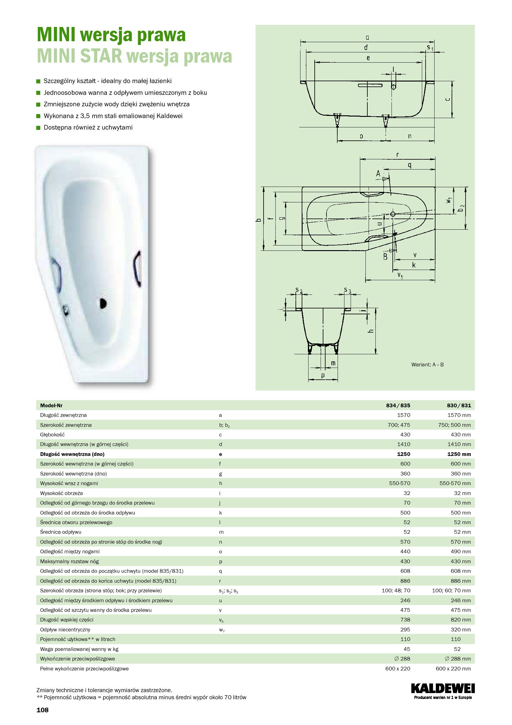 Wykonana z 3,5 mm stali emaliowanej Kaldewei