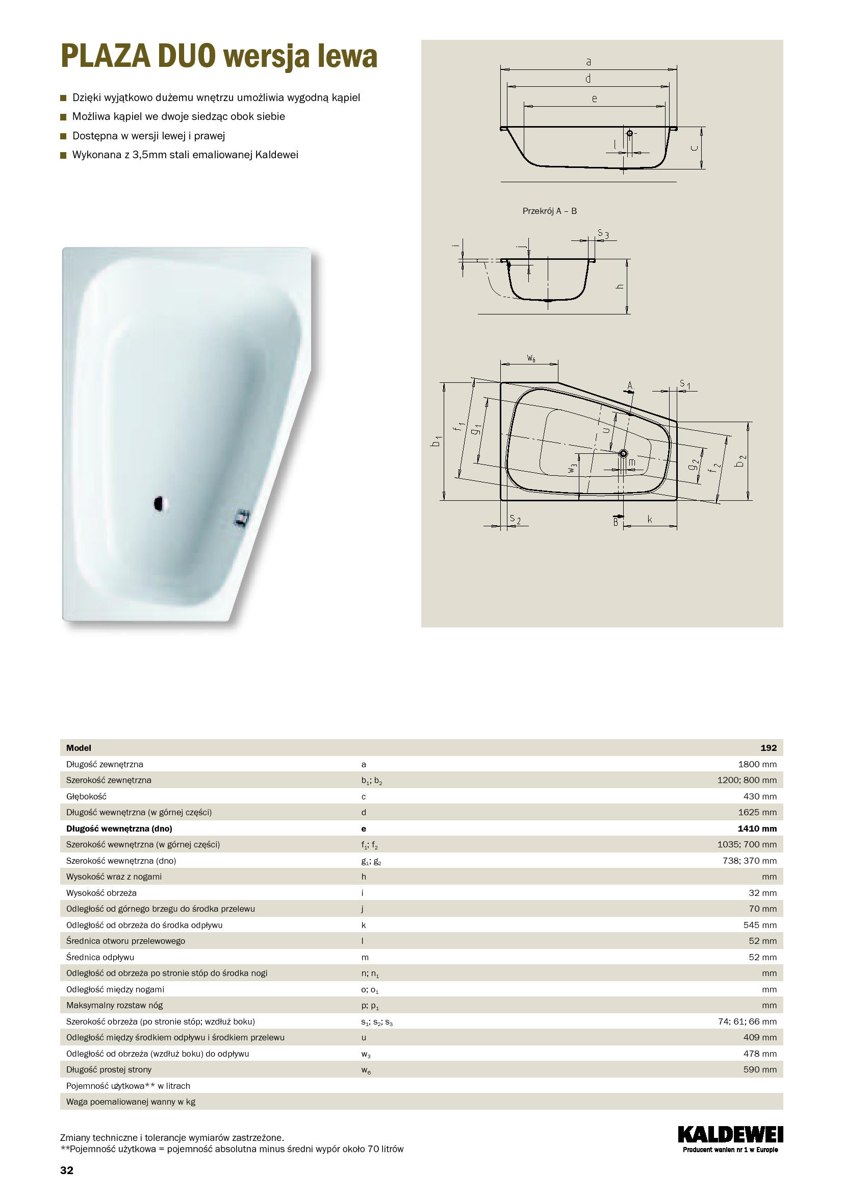 Wykonana z 3,5mm stali emaliowanej Kaldewei