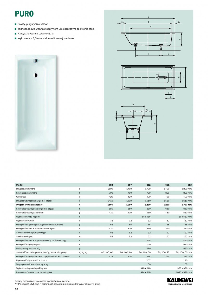 Wykonana z 3,5 mm stali emaliowanej Kaldewei