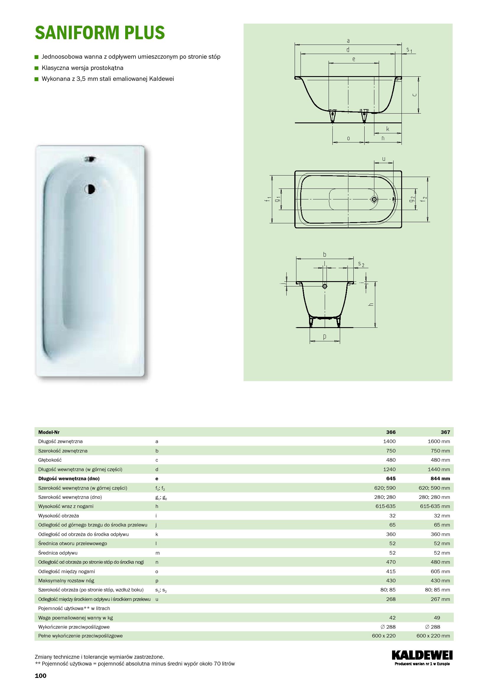 Wykonana z 3,5 mm stali emaliowanej Kaldewei