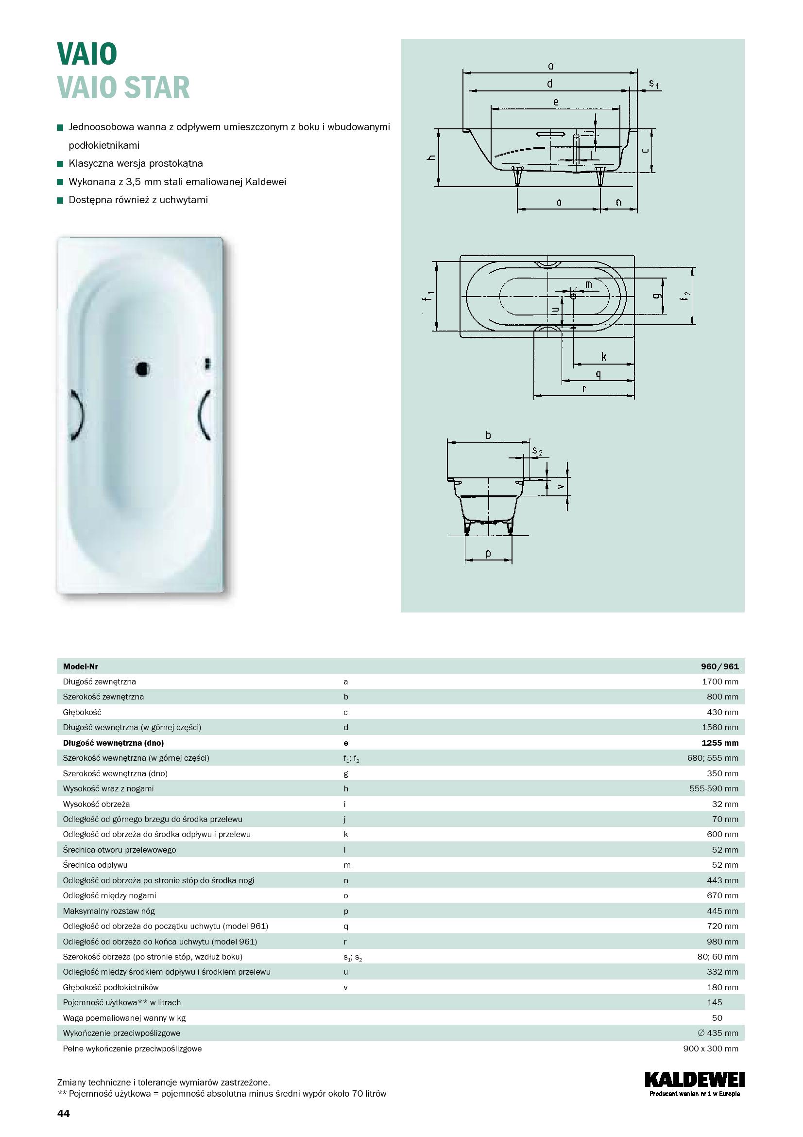 Wykonana z 3,5 mm stali emaliowanej Kaldewei