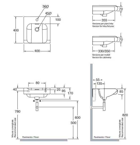 Umywalki można montować na dowolnym blacie, istnieje także możliwość kombinacji z ceramicznymi blatami i meblami dostępnymi w kolekcji.