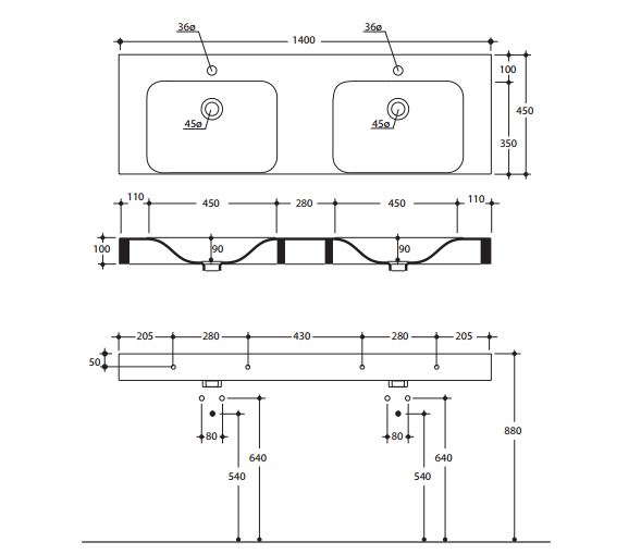 Umywalka z dwoma otworami na baterie.