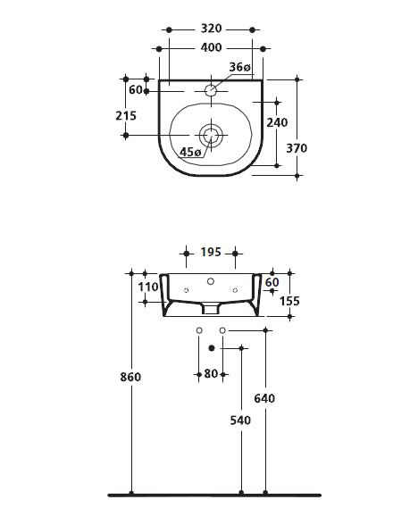 Umywalka wisząca lub do montażu na blacie, meblu.