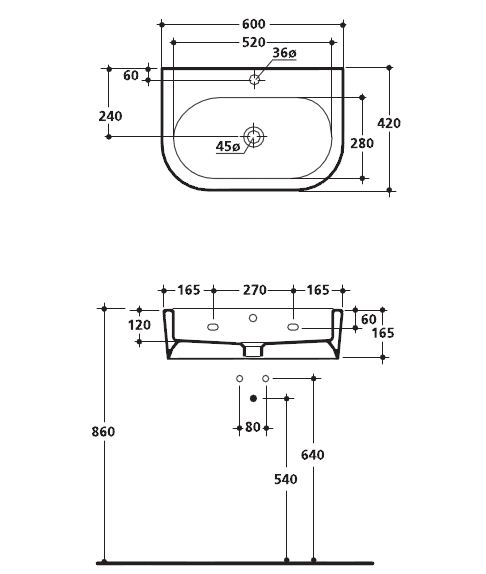 Umywalka wisząca lub do montażu na blacie, meblu.