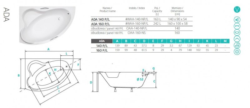 Wanna polskiego producenta PMD Piramida wykonana z akrylu sanitarnego.