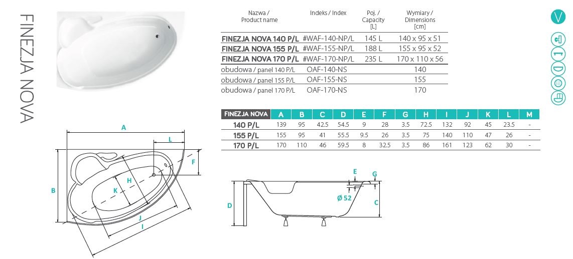 Wanna polskiego producenta PMD Piramida wykonana z akrylu sanitarnego.