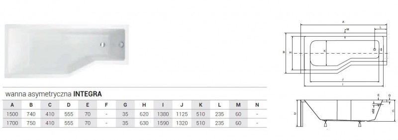 Opinie o: BESCO Integra wanna asymetryczna prawa 150x75 biały INTEGRA 150P