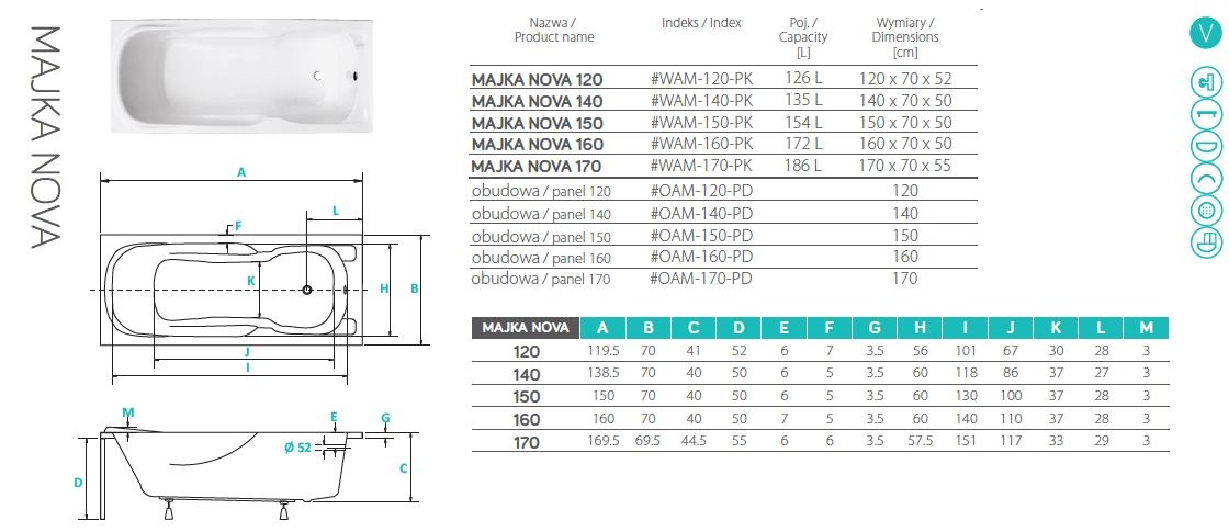 Wanna polskiego producenta PMD Piramida wykonana z akrylu sanitarnego.