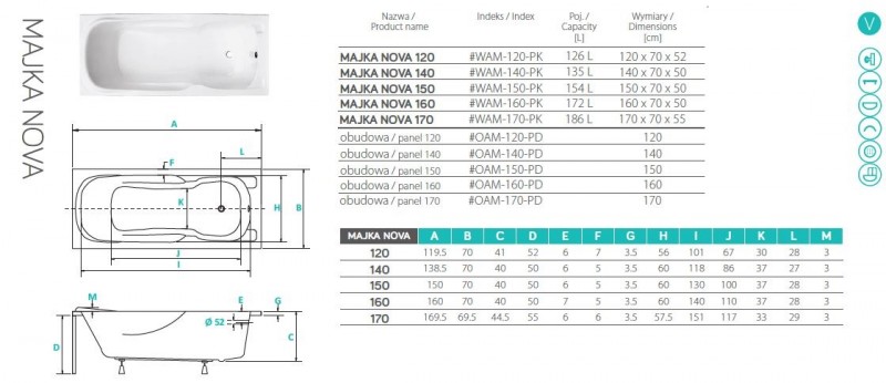 Wanna polskiego producenta PMD Piramida wykonana z akrylu sanitarnego.