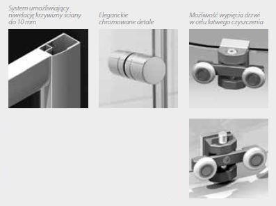 Zabudowa nawannowa z drzwiami dwuczęściowymi. W zależności od sytuacji w łazience można zamontować same drzwi pomiędzy dwiema ścianami stałymi bądź drzwi i ściankę boczną zabudowując narożnik. Dostępne z wypełnieniem ze szkła hartowanego z powłoką Easy Clean przejrzystym lub fabric. W przypadku zakupu drzwi i ścianki bocznej proszę podać dwa numery artykułów drzwi DWD i ścianki S.