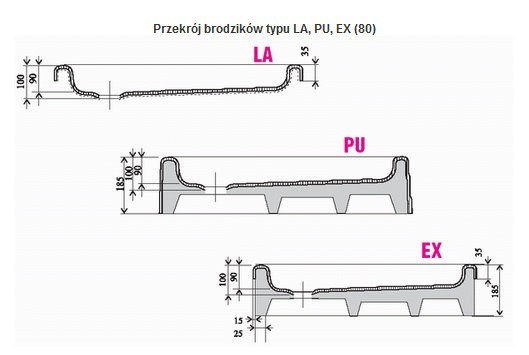 Brodziki typu PU składają się z akrylowej skorupy i poliuretanowego nośnika wzmocnionego włóknami szklanymi. Brodziki PU są samonośne, tłoczone w całości z panelem.