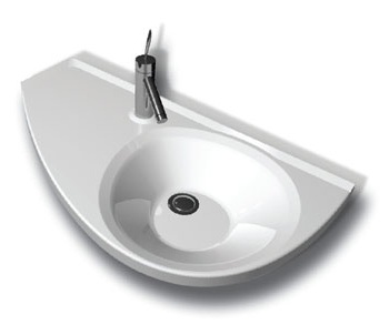 Kształt umywalki umożliwia jej umieszczenie nad węższą stroną wanny, zabierając w ten sposób minimalną przestrzeń w łazience.