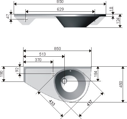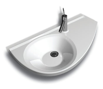 Kształt umywalki umożliwia jej umieszczenie nad węższą stroną wanny, zabierając w ten sposób minimalną przestrzeń w łazience.