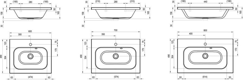 Umywalka bez przelewu - konieczne użycie otwartego (stałego) korka umywalkowego.