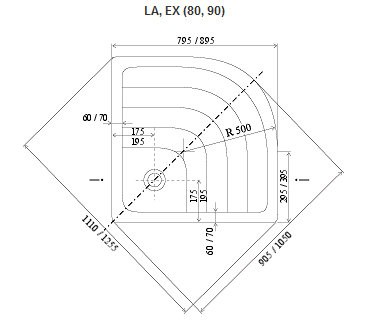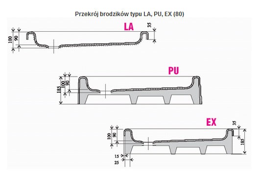 Brodziki typu EX składają się z poliuretanowego nośnika i akrylowej skorupy. Od brodzików PU różnią się tym, że skorupa akrylowa jest obcięta w taki sposób, aby brodzik można było zabudować i wykafelkować przy zastosowaniu tradycyjnych metod budowlanych. Płytki przykleja się bezpośrednio do obudowy nośnika.