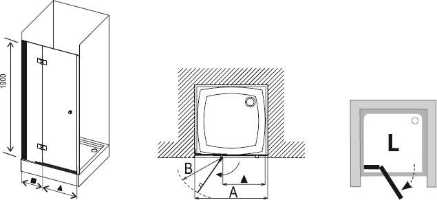 Montuje się w obłożonej płytką łazience. Produkt idealny do montażu w wykończonej wnęce prysznicowej lub jako kabina prysznicowa w połączeniu ze stałą ścianą SMPS). Instalacja na brodzikach RAVAK Aneta, Angela, Angela Basic, Perseus, Perseus Pro, Perseus Pro Flat, Gigant Pro, Gigant Pro Flat lub bezpośrednio na podłodze z wbudowanym odpływem liniowym. Drzwi prysznicowe oferujemy w wersji A lub B. Wersja A jest przeznaczona do montażu w otworach budowalnych mniejszych aż o 11 mm od standardowych wymiarów wyrobu. Wersja B jest przeznaczona do montażu w otworach budowalnych większych aż o 16 mm od standardowych wymiarów wyrobu. Za pomocą profili poszerzających wyrównuje się nierówności budowlane (aż o 1,5 cm po każdej stronie).