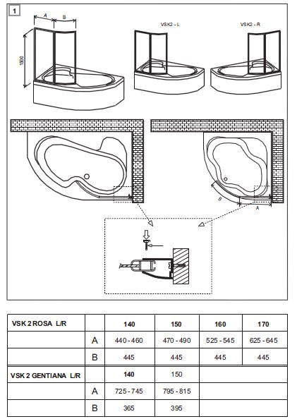 Parawan dedykowany do wanny Ravak Rosa I 140 prawej.