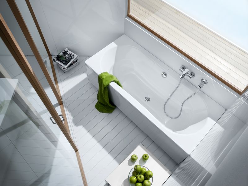 Wanna ze stali emaliowanej o grubosci 3,5 mm, dno antyposlizgowe, podkładki wytłumiajace, uziemienie.