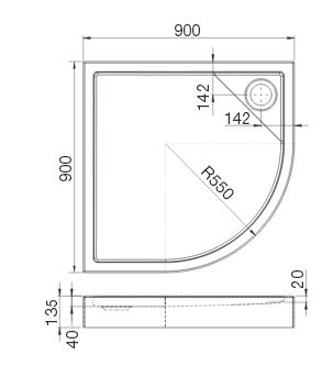 Brodzik wykonany z akrylu wylewanego sanitarnego o grubości 3,2 mm.