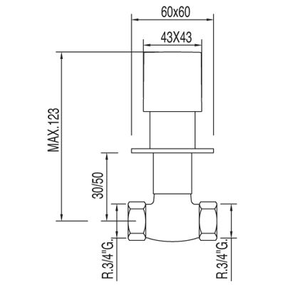 Tres Cuadro zawór odcinający z gwintem 3/4;amp;amp;quot; chrom 1.07.511
