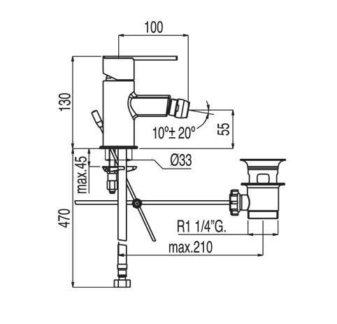 Tres Lex bateria bidetowa perlator z korkiem chrom 1.86.120