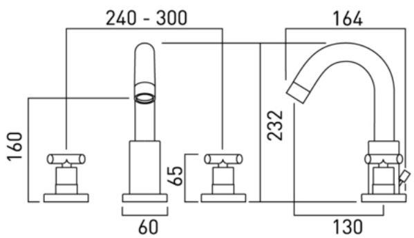 Vado Elements Water bateria umywalkowa trzyotworowa chrom.