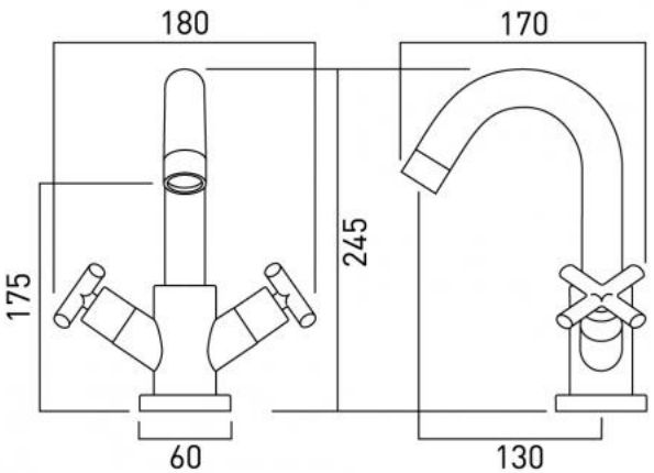 Vado Elements Water bateria umywalkowa dwuuchwytowa z korkiem klik-klak chrom.