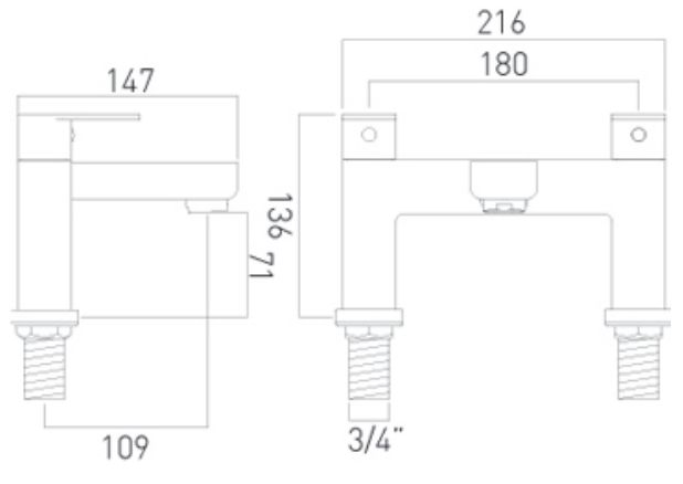 Vado Phase bateria wannowa dwuuchwytowa dwuotworowa chrom.