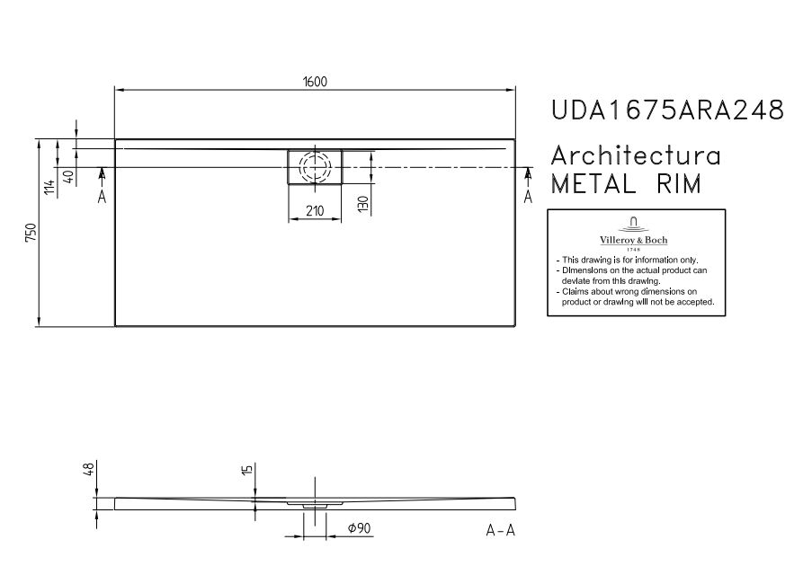 Odpływ o średnicy 90mm.