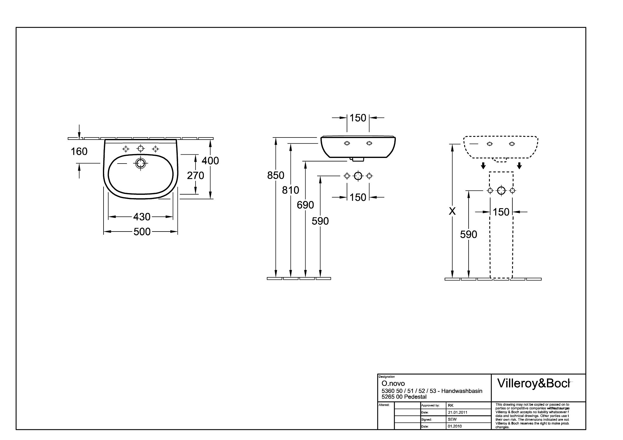 Umywalka O.Novo, z otworem na baterię, z otworem przelewowym.
